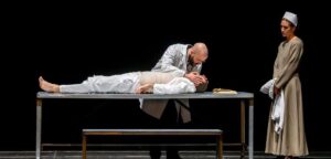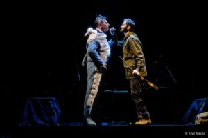 Il pubblico viene privato di chiari riferimenti, disorientato fatica a catalogare il bene e il male. L’aura di mistero, mista a straniamento, è cifra particolarmente riuscita. In virtù sia del testo che della mise-en-scène, con un ambiente misero e squallido che viene combinato alle tinte dark dei costumi di Noemi Intino.