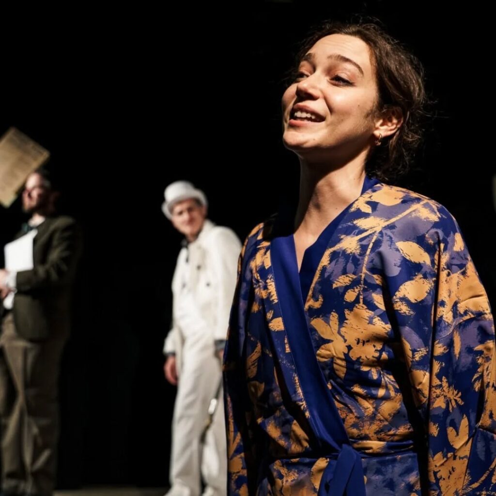 Il lavoro sugli attori punta a una recitazione stilizzata, a tratti simbolica, che riflette il carattere surreale del testo di partenza. I personaggi non sono sviluppati in senso psicologico tradizionale, ma appaiono spesso come figure emblematiche, portatrici di idee più che di conflitti interiori complessi. Woland (l’ottimo Francesco Polizzi, la cui prova recitativa domina sul resto del cast) incarna una presenza perturbante, mentre il Maestro resta una figura segnata dalla rinuncia e dall’isolamento, più osservata che realmente approfondita nel suo percorso interiore. Margherita (Giulia Sanna, anche nel ruolo di Elèna, amante dell’autore) occupa uno spazio centrale nell’economia dello spettacolo, ma la sua trasformazione e il suo gesto di ribellione vengono suggeriti più che raccontati. La relazione amorosa, motore fondamentale dell’opera di Bulgakov (interpretato da Andrea Lami, anche nel ruolo del Maestro, alter ego naturale dell’autore), è trattata in modo allusivo e simbolico, lasciando ampi margini di interpretazione ma sacrificando talvolta la tensione emotiva delle scene.