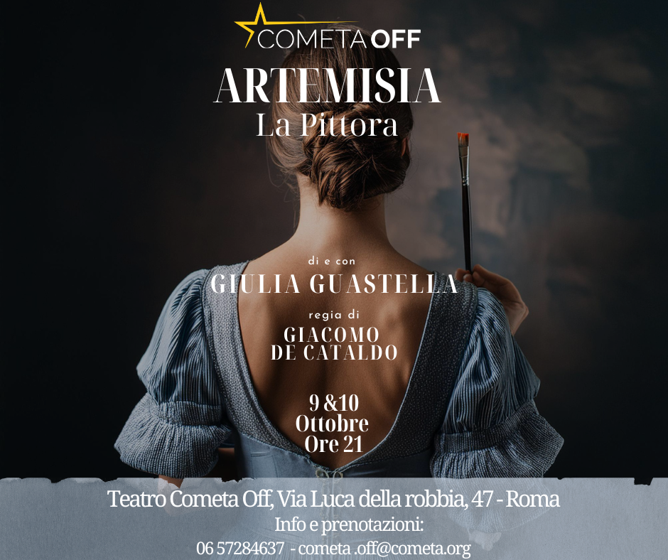 Artemisia, la pittora è un monologo scritto ((da uno studio filologico sugli atti originali del processo a Artemisia Gentileschi)) e interpretato da Giulia Guastella, con la regia e la collaborazione drammaturgica di Giacomo De Cataldo, produzione e costumi a cura di Officina Pasolini sarà in scena il 9 e 10 ottobre al Cometa Off di Roma.