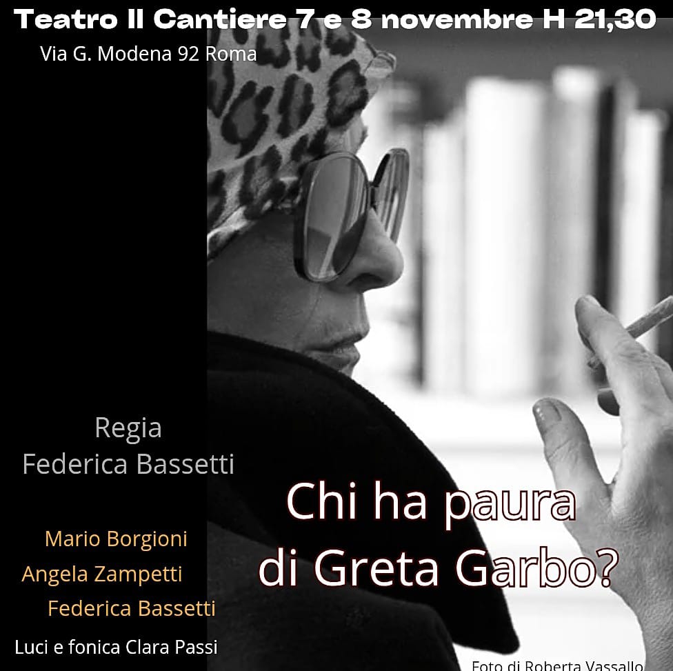 Venerdì 7 e sabato 8 novembre va in scena al Teatro Il Cantiere “CHI HA PAURA DI GRETA GARBO?” con Mario Borgioni, Angela Zampetti e Federica Bassetti che cura anche la regia.