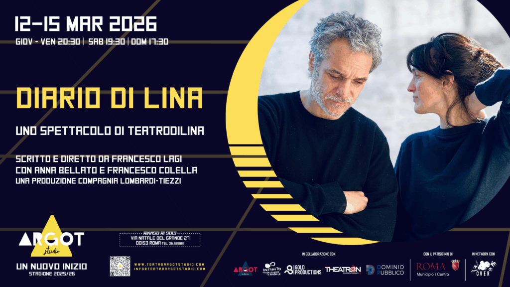 A tre anni dal debutto proprio all’Argot Studio, torna in una nuova veste dal 12 al 15 marzo 2026, Diario di Lina scritto e diretto da Francesco Lagi, con Anna Bellato e Francesco Colella, uno spettacolo di Teatrodilina prodotto dalla Compagnia Lombardi-Tiezzi.  Una nuova versione di un testo che è cambiato negli anni e si è modificato mettendo a fuoco nuovi temi e nuove parole di un racconto intimo, che affonda sui temi della perdita e la crisi di un amore. Un piccolo cantiere che ha definito un nuovo spettacolo che ha al centro una coppia, un uomo e una donna, e il loro spaesamento, confuso doloroso e ironico, di fronte alla morte del loro cane. Testimone di tutto il loro amore, infatti, è sempre stata Lina, la cagnetta che ormai non c’è più, evocata dai due protagonisti Anna Bellato e Francesco Colella in un dialogo serrato fatto di complicità ed emozione, inquietudine e malinconia. In quell’attimo di sospensione dal quotidiano che così efficacemente riesce a disegnare Francesco Lagi nel suo teatro.