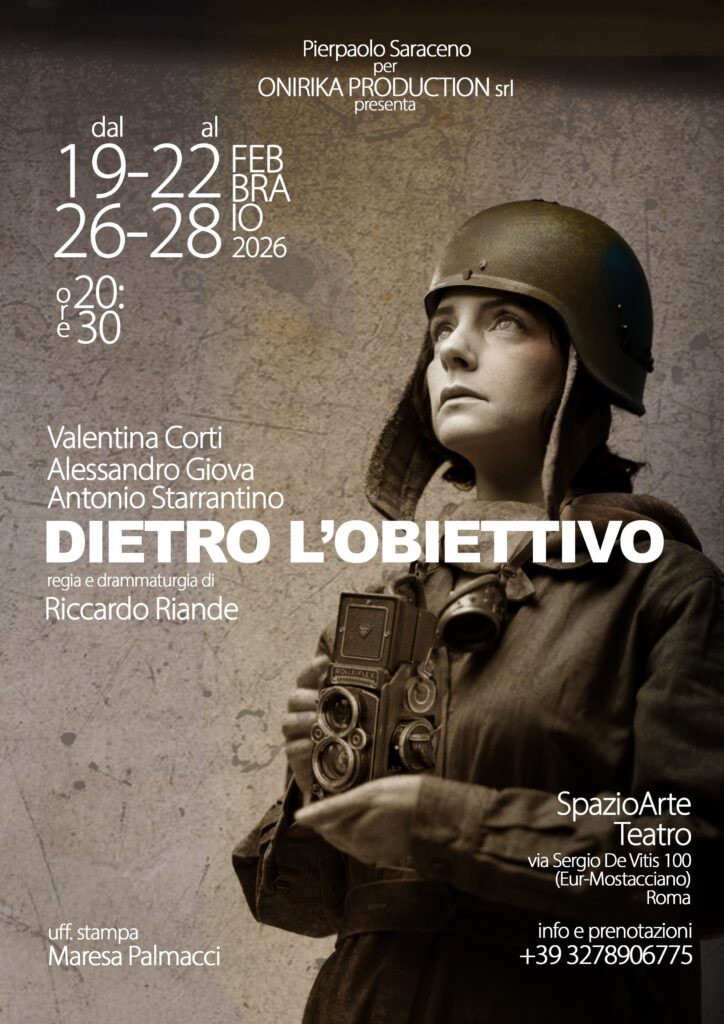Debutta in prima assoluta, dal 19 al 22 febbraio e dal 26 al 28 febbraio, presso SpazioArte Teatro a Roma, DIETRO L’OBIETTIVO, spettacolo scritto e diretto da Riccardo Riande, che racconta la vita di Lee Miller, figura centrale del Novecento, interpretata da Valentina Corti.
