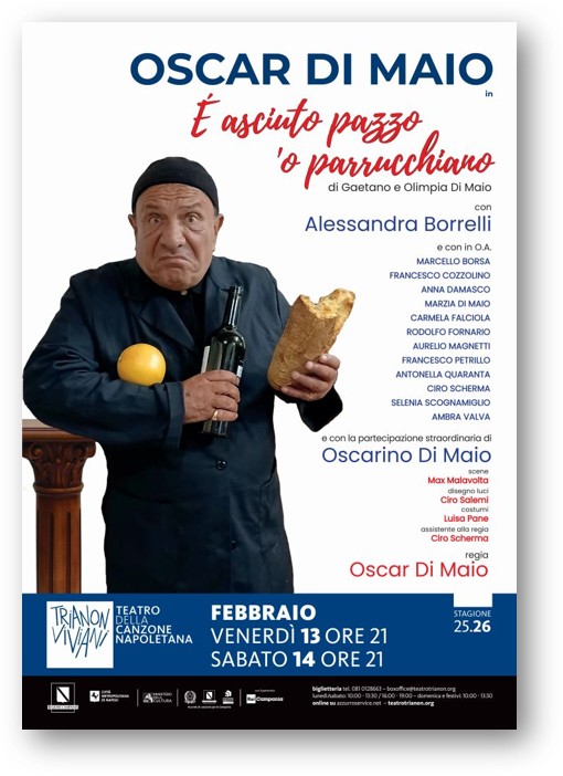 Oscar Di Maio – quarta generazione della famiglia teatrale fondata da Crescenzo Di Maionel 1875 – è il protagonista e il regista dc È asciuto pazzo ‘o parrucchiano, una commedia classica scritta dagli zii Gaetano e Olimpia.