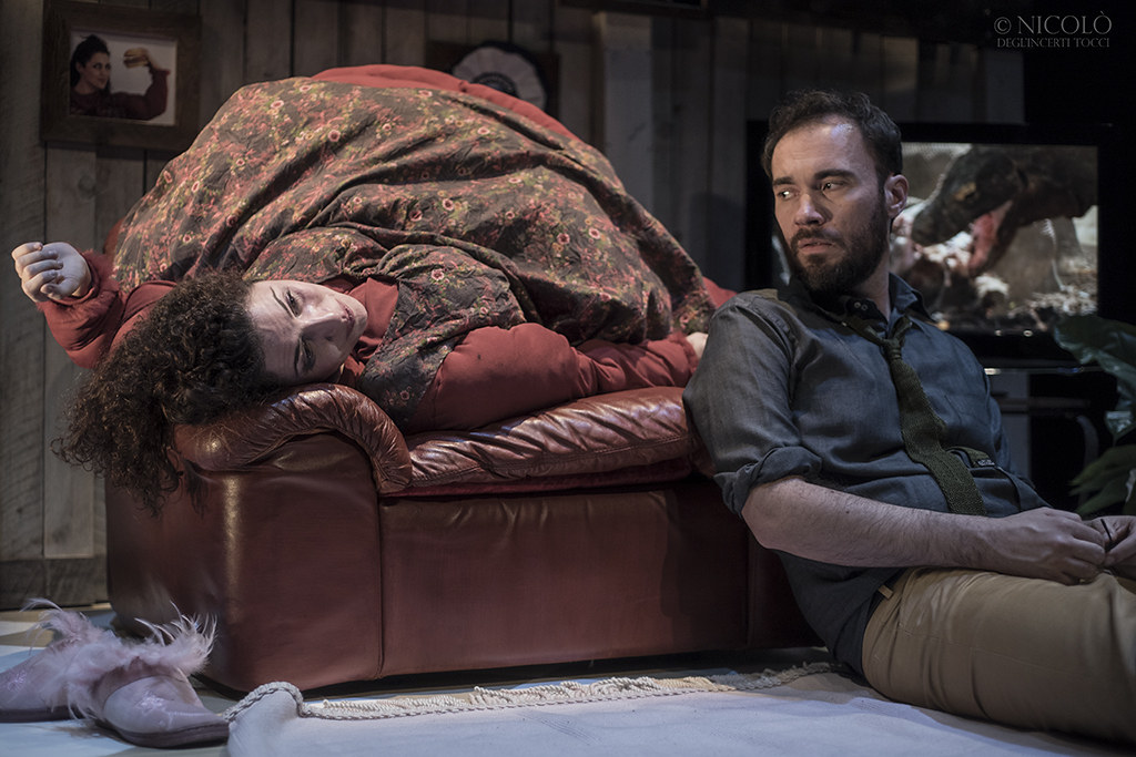 Una grossa crepa minaccia la sicurezza della casa in cui vivono i protagonisti della storia, ma solo uno di loro sembra preoccuparsene: l’Uomo del piano di sotto, che da mesi tenta di convincere la coppia di vicini a intraprendere i lavori di ristrutturazione. Ma la crepa si trova proprio sotto il divano della Donna più grassa del mondo che pesa quattrocento sessanta chili, non può muoversi e non ha intenzione di smettere di mangiare. In un’epoca in cui sembra che la nostra società abbia raggiunto il suo massimo grado di benessere, questa commedia, attraverso una cifra grottesca e paradossale, ci induce a riflettere sulla capacità dell’uomo di immaginare un modo alternativo per raggiungere la felicità che non lo condanni all’autodistruzione.