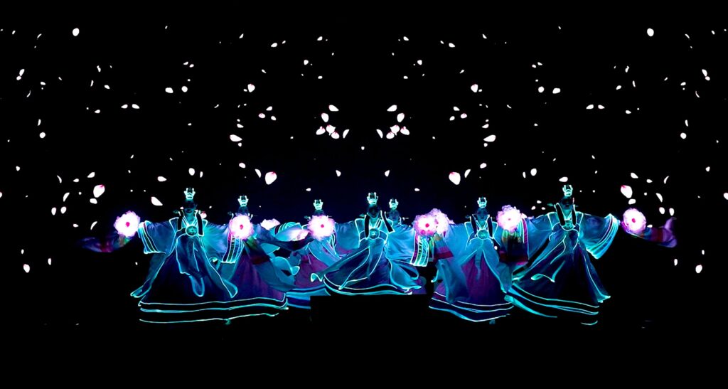 Lo spettacolo nasce dall’incontro tra Inpungnyu, la compagnia di performance tradizionali coreane, e il Saeng Dong Gam, il primo gruppo della Corea del Sud ad aver introdotto la Tron Dance (danza eseguita con le luci LED). Lo spettacolo, presentato per la prima volta in Italia, con oltre venti artisti sul palcoscenico, si basa infatti su spettacolari luci LED e sulle più avanzate tecnologie di scena, fondendo la danza e le arti performative tradizionali coreane (Yeonhui), la break dance (b-boying) e il K-pop con l’arte multimediale. Il pubblico potrà così vivere da vicino le più recenti tendenze artistiche del paese asiatico che sempre più attira l’interesse del pubblico occidentale e dei più giovani.