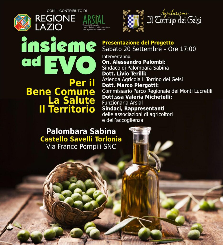 Insieme a Evo: parte da Palombara Sabina il progetto oleoturistico ideato da Livio Terilli, titolare dell’Azienda Agricola Il Torrino dei Gelsi. Valorizzare la produzione locale di olio extravergine d’oliva attraverso uno studio di mercato mirato a individuare le potenzialità del prodotto, analizzare domanda e offerta, e costruire strategie efficaci di promozione e posizionamento sui mercati nazionali e internazionali. Sono questi gli obiettivi del progetto “Insieme a Evo: per il bene comune, la salute, il territorio”, ideato dal Dott. Livio Terilli, titolare dell’Azienda Agricola Il Torrino dei Gelsi, e finanziato da Arsial.