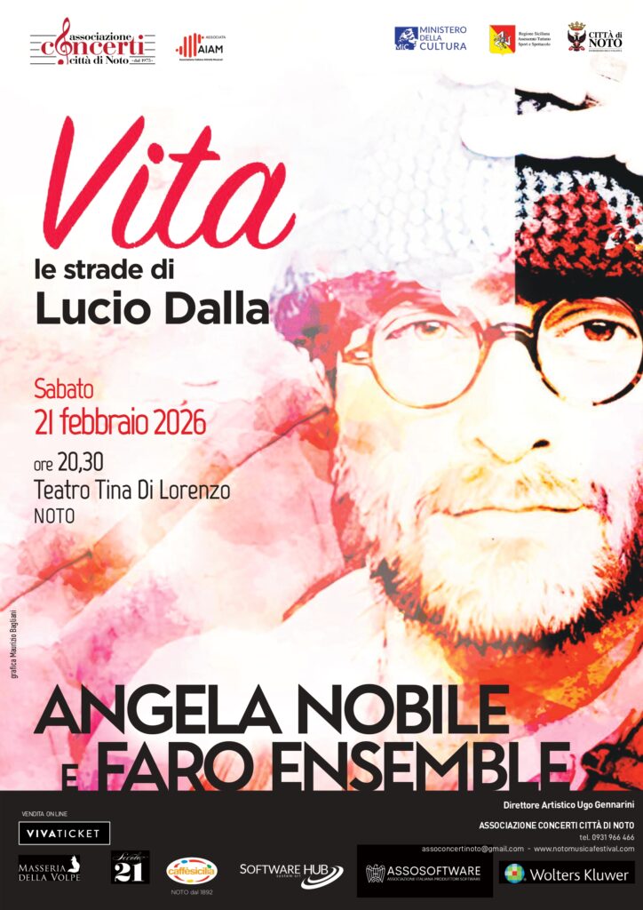 Sono quattro i concerti che compongono il cartellone che sarà inaugurato sabato 21 febbraio alle 20.30 da Vita… le strade di Lucio Dalla che vedrà sul palco protagonista la voce Angela Nobile accompagnata dal Faro Ensemble composto da Alessandro Faro (chitarra), Santi Romano (contrabbasso), Corrado Genovese (violino) e Cristian Bianca (violino). Il concerto non è un vero e proprio tributo al grande Lucio Dalla, ma è un elogio alla poesia della musica che diventa letteratura, attualità, confronto e messaggio potente.