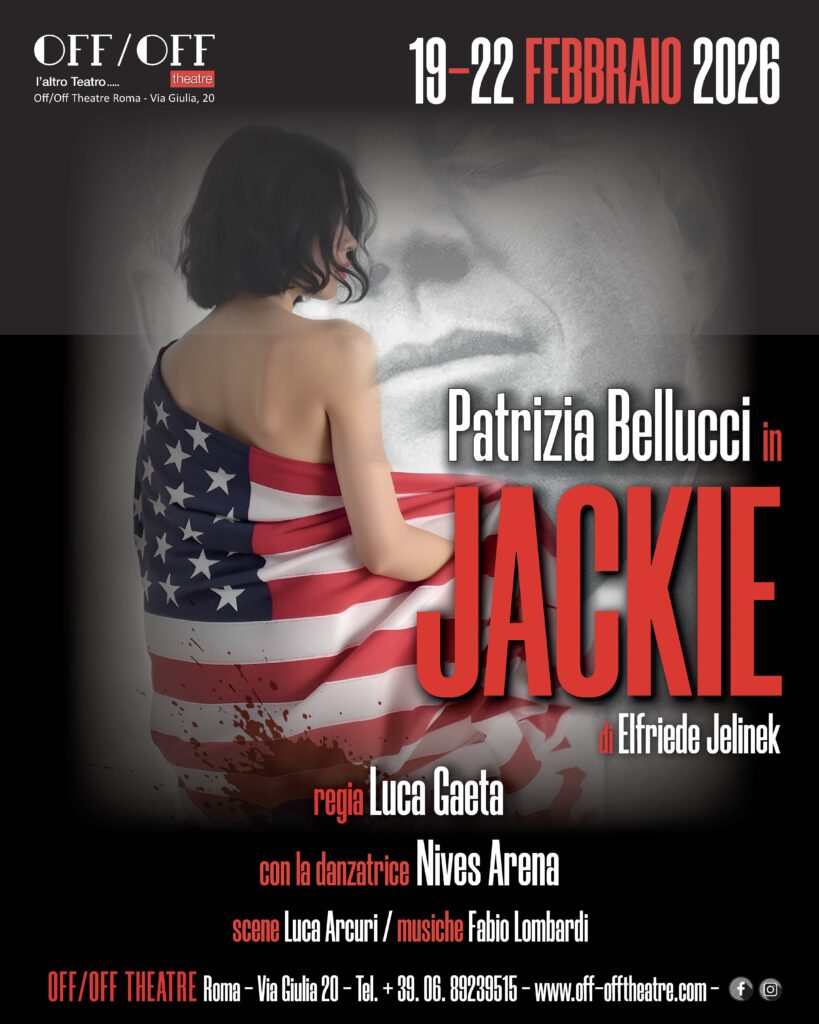 Da giovedì 19 a domenica 22 febbraio rivive il mito di Jackie, protagonista dello spettacolo omonimo al suo debutto nazionale, diretto da Luca Gaeta e tratto dal testo di Elfriede Jelinek. Sul palco nei panni di Jacqueline Kennedy, c’è Patrizia Bellucci, unica interprete di un sentito monologo impreziosito dalle musiche di Fabio Lombardi, omaggio alla vita (e alla tragedia) della first lady statunitense.
