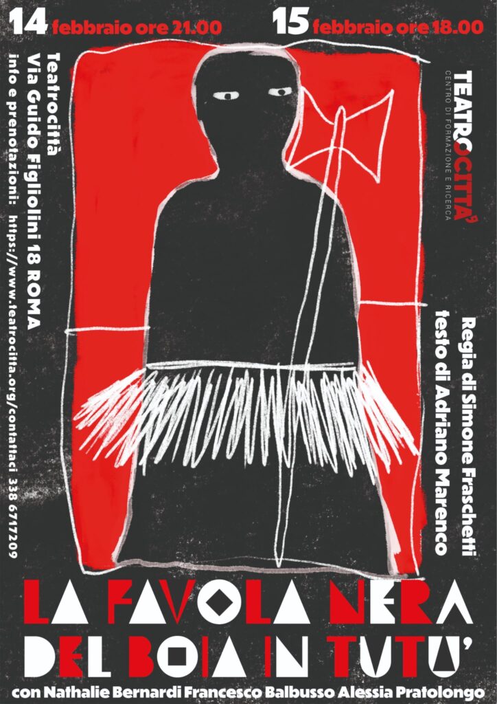 In scena il Boia e l’Attore. Due universi lontani con uno stesso marchio sociale. A manovrare i fili di queste marionette c’è il Demiurgo, un Dio/Mefisto ambiguo, un regista lunatico, che crea i primi attori sulla terra. Tre guitti che parlano in rima e agiscono in coro.