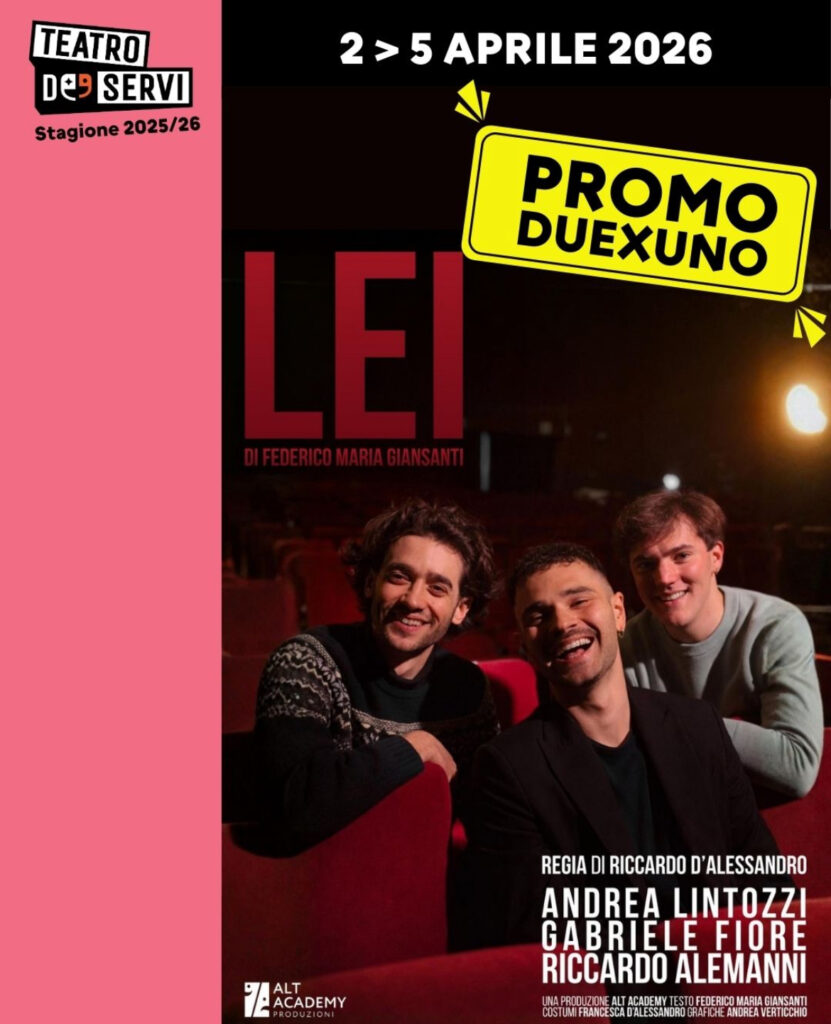 Approda al Teatro de’ Servi dal 2 al 5 aprileLEI, spettacolo scritto da Federico Maria Giansanti e diretto dallo sguardo sensibile di Riccardo D’Alessandro.