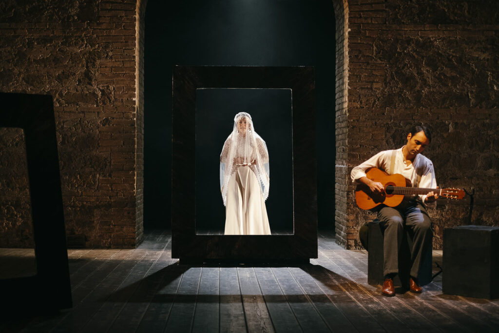 Fondamentale è anche la musica dal vivo di Caputo, che accompagna lo spettacolo con la chitarra e con canti popolari che diventano vera materia drammaturgica. Non semplice accompagnamento, ma un dialogo continuo con la parola scenica.