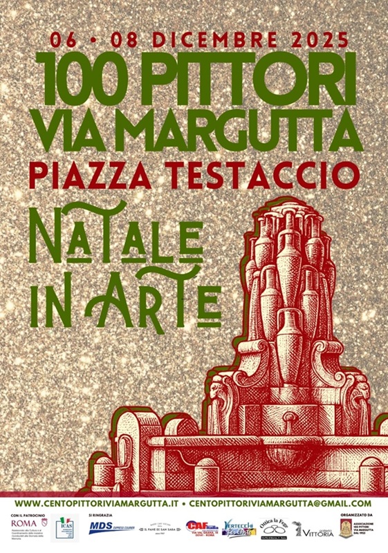 La storica Associazione Cento Pittori Via Margutta debutta per la prima volta a Testaccio, con la mostra diffusa “Natale In Arte”dal 6 all’8 dicembre 2025, a Piazza Testaccio, in uno dei quartieri più caratteristici, storici e autentici di Roma.