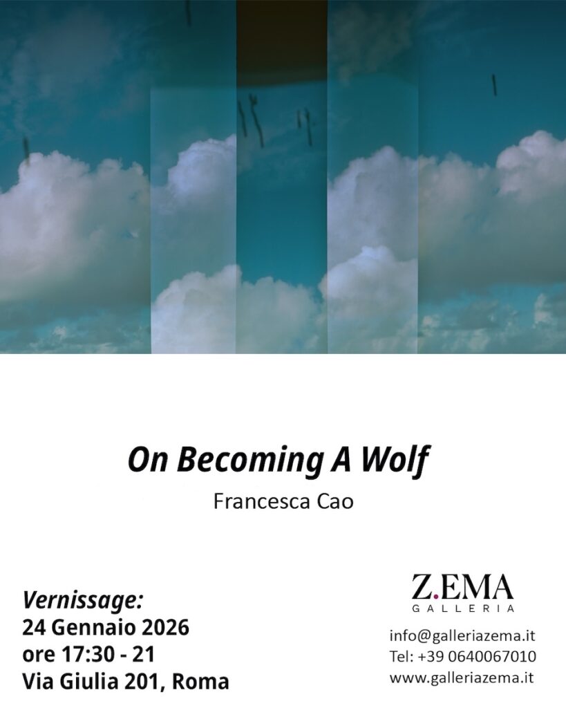 Il giorno 24 gennaio 2026 alle ore 17.30 la Galleria Zema presenta la mostra On Becoming A Wolf di Francesca Cao, un progetto fotografico sviluppato e curato dall’artista stessa attraverso l’Errore Metodico, una tecnica fotografica analogica brevettata, basata sulla sovrapposizione intenzionale di più fotogrammi in fase di scatto. Lontano da un intento documentaristico, il lavoro prende forma come una narrazione interiore e psicanalitica, un’indagine visiva che attraversa il tema della liberazione del femminile mediante un linguaggio intimo, istintivo e imperfetto.