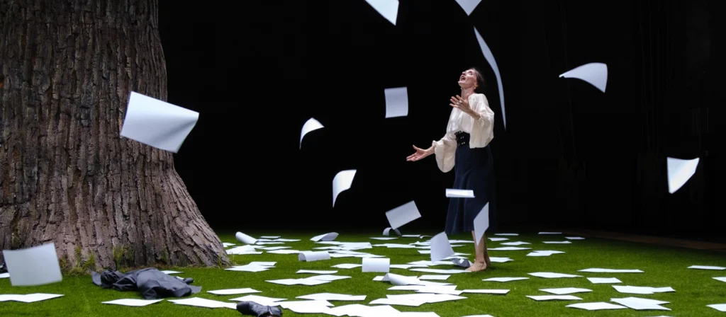 Dal romanzo di Virginia Woolf – e dal carteggio tra Virginia Woolf e Vita Sackville-West Scrivi sempre a mezzanotte (Donzelli) – drammaturgia Fabrizio Sinisi – traduzione Nadia Fusini – Regia Andrea De Rosa – con Anna Della Rosa – scene Giuseppe Stellat – luci Pasquale Mari – suono G.U.P. Alcaro – costumi Ilaria Ariemme – musica di scena Sinfonia n. 6 (patetica) di Cajkovskij – produzione TPE – Teatro Piemonte Europa