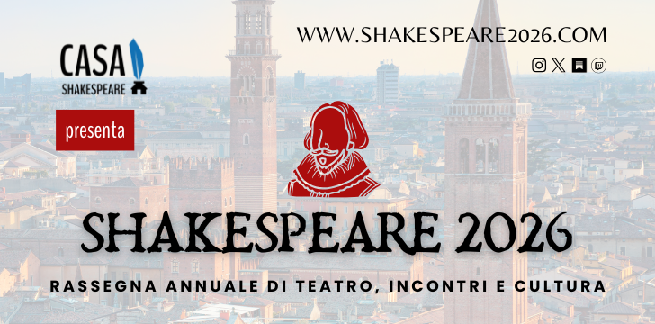 Casa Shakespeare invita sponsor, media partner, giornalisti, igers, realtà convenzionate e amici della compagnia alla conferenza stampa dedicata al lancio ufficiale di Shakespeare 2026, il grande progetto culturale che accompagnerà Verona per tutto il prossimo anno, in occasione del 410° anniversario della morte di William Shakespeare e del Congresso Mondiale Shakespeariano ospitato in città dal 20 al 26 luglio.