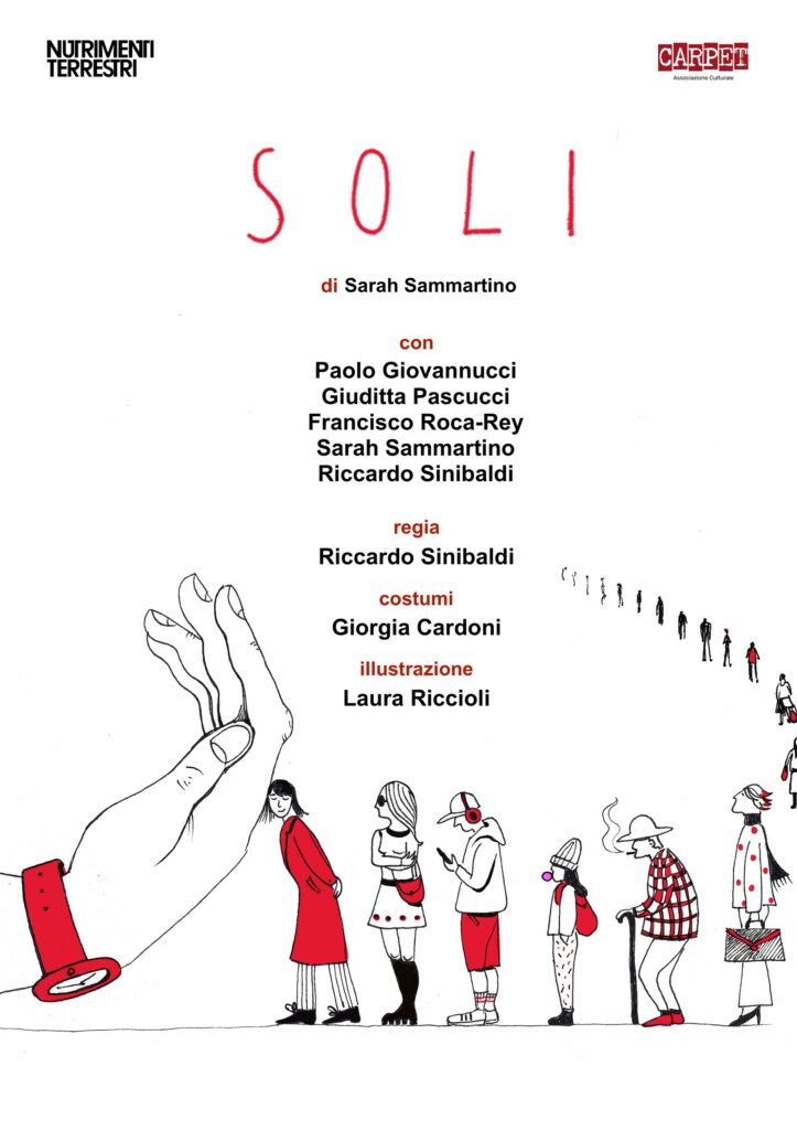 Viviamo in un mondo in cui tutto è mercificabile e le relazioni interpersonali si perdono dentro i nuovi mezzi di comunicazione, distruggendo e alterando non solo il nostro modo di vivere, ma anche la nostra idea di ciò che è “umano”. L’analisi di questo processo di modificazione del reale viene affrontata in Soli con una base di ironia e delicatezza che evita qualsiasi giudizio, ma allo stesso tempo riesce a porci delle domande a cui dobbiamo trovare delle risposte, perché le categorie che applichiamo alla nostra vita devono cambiare, se vogliamo capire cosa ci sta accadendo.