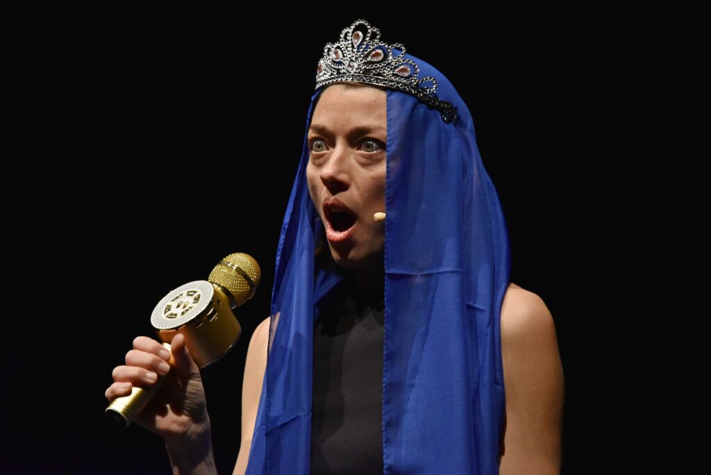 Sputo è un anti-monologo: le voci al suo interno non sempre parlano la stessa lingua e a volte non vanno molto d’accordo fra loro. Uno spettacolo tutto nel corpo dell’attrice che le traduce infedelmente in scena mescolando tutte le voci alla sua.
