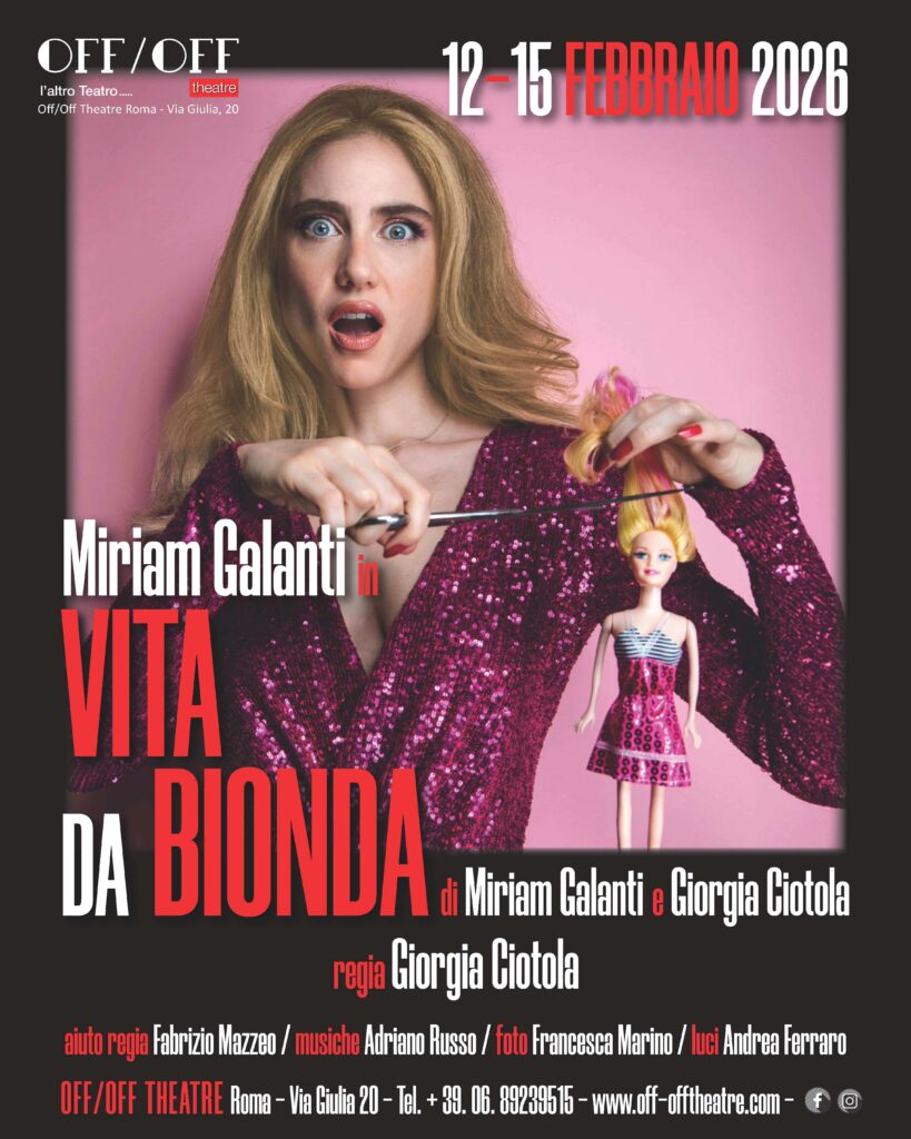 Impegnata tra cinema, teatro e stand-up, Miriam Galanti debutta in prima nazionale all’OffOff Theatre, da giovedì 12 adomenica 15 febbraio, con il suo “Vita da bionda”, scritto insieme a Giorgia Ciotola, che ne cura anche la regia.