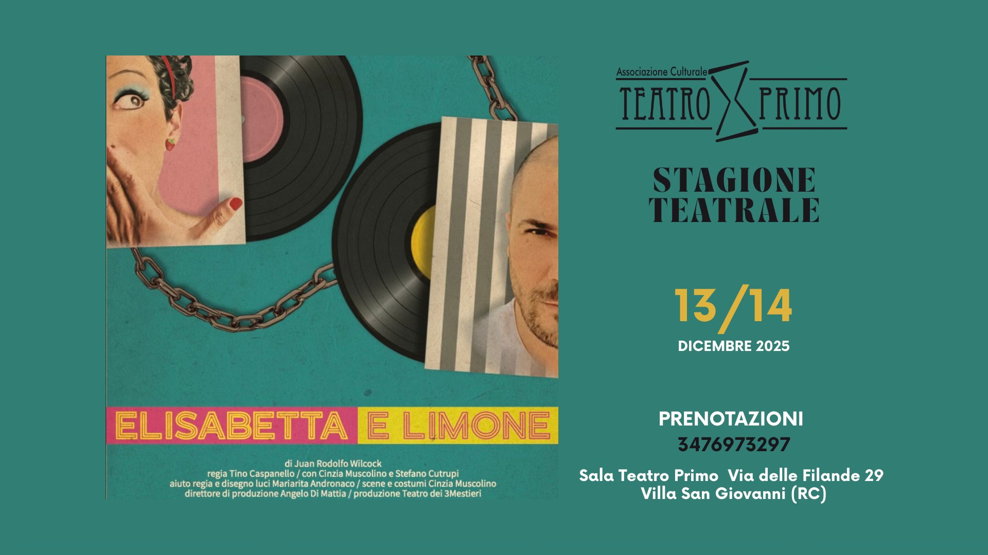 Prosegue la 12ª Stagione di Drammaturgia Contemporanea del Teatro Primo di Villa San Giovanni (RC), che ha la direzione artistica di Silvana