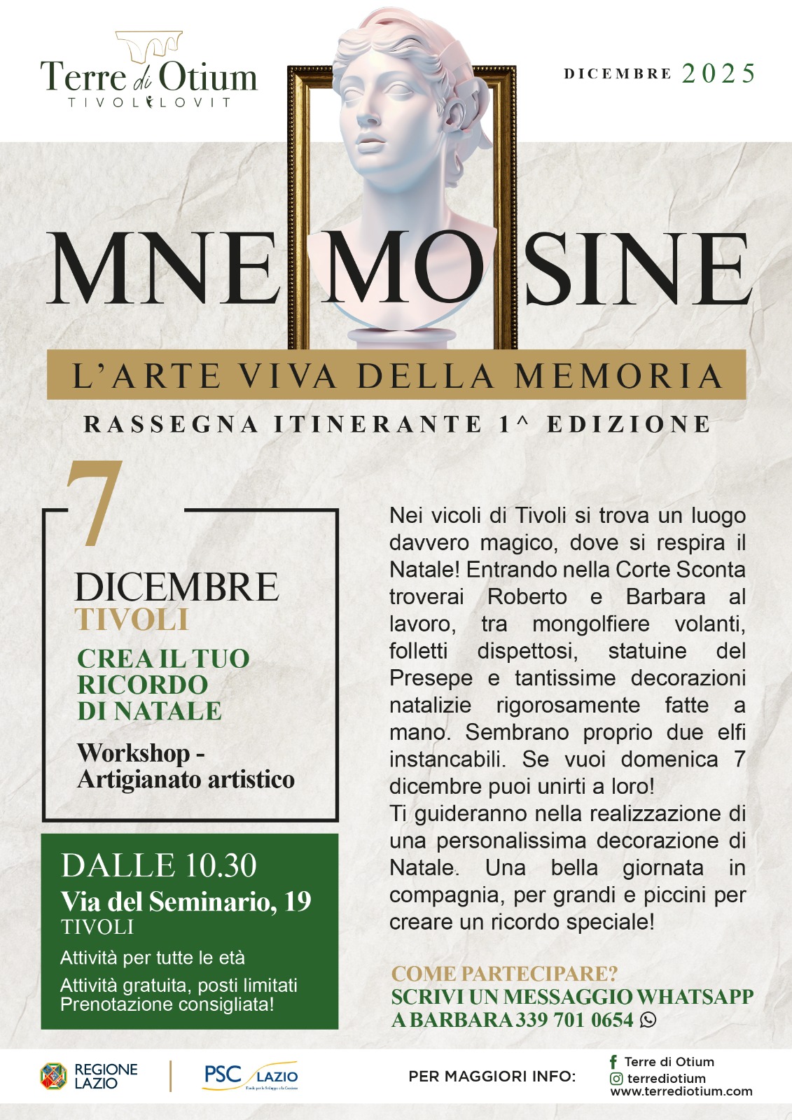 Si è svolto domenica 7 dicembre a Tivoli, l’atteso workshop di artigianato artistico “Crea il tuo ricordo di Natale”, che