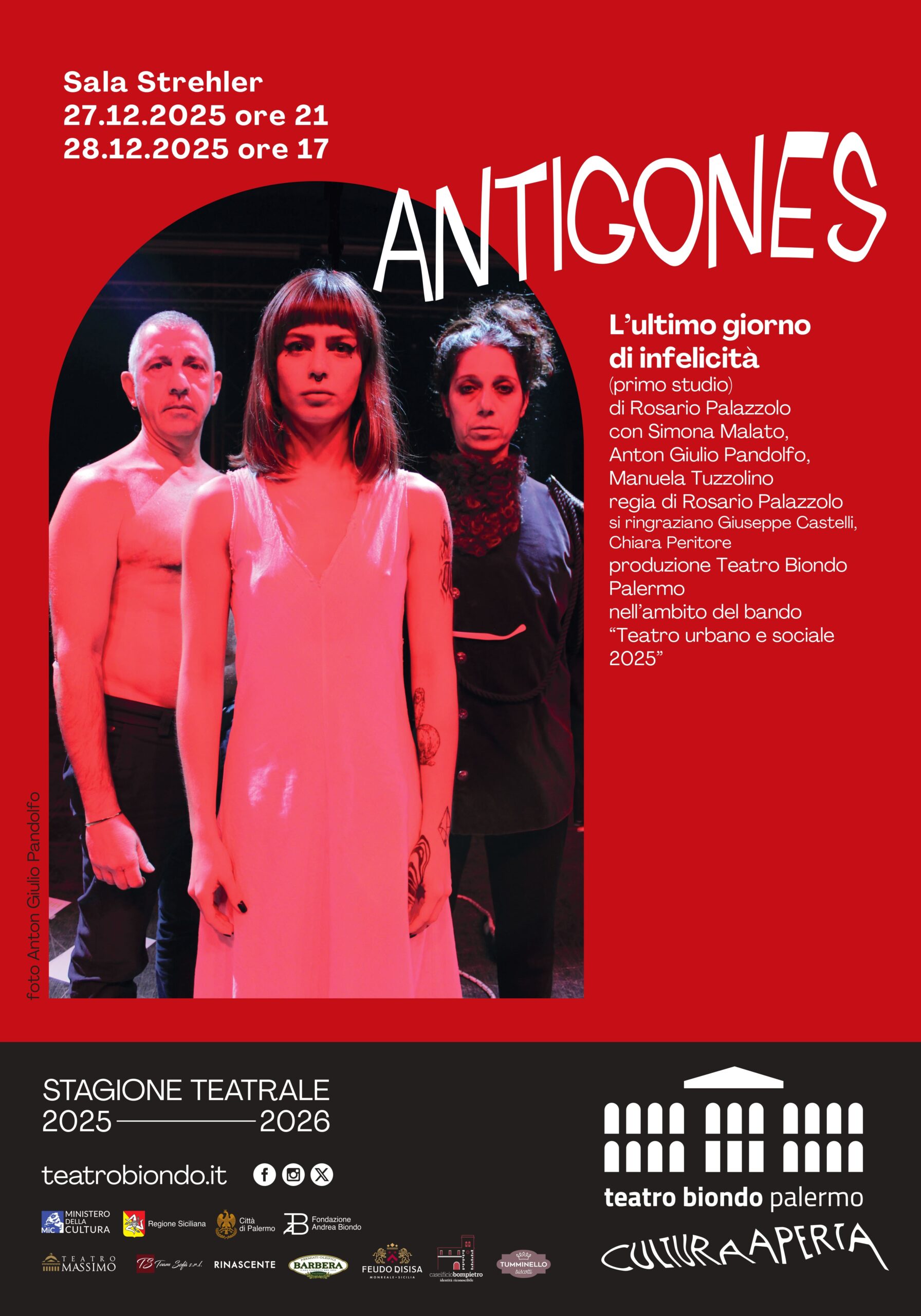 Debutta sabato 27 dicembre, alle ore 21.00 nella Sala Strehler del Teatro Biondo di Palermo, lo spettacolo Antigones - L’ultimo giorno di