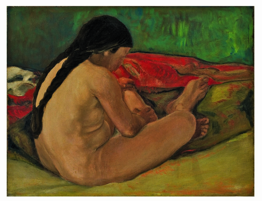 Da non confondere con Les femmes de Tahiti, tra le opere esposte è presente Femme de Tahiti, dipinto non molto noto proveniente dalla collezione di Giovanni Testori e Alain Toubas, che ritrae una donna nuda seduta per terra, inconsapevole e incurante della propria nudità, assorta dai pensieri e lavori all’interno della capanna in cui è accovacciata. Salta all’occhio in quest’opera una matericità nuova della pittura di Gauguin: nonostante le pennellate piatte e composte, crea una percezione di tattilità visiva quasi scultorea e monumentale che rifugge da chiaroscuri, ma adempie a un intento di corposità pittorica.