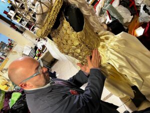 Per i lavori astratti mi ispiro al primo Quattrocento e al Gotico Internazionale, rifacendomi all’iconografia Classica. Nello specifico tendo l’occhio al nobile cavaliere San Giorgio e il drago, che fin da sempre è stato ripreso da moltissimi artisti, quali Donatello o Cosmè Tura, rivelandosi un’icona a dir poco inflazionata. A livello di tematiche attualmente sto rielaborando proprio il primo Quattrocento; ispirandomi al Pittore italiano Gentile da Fabriano, con l’oro e i funghi dorati. Mentre, le opere in stile figurativo che realizzavo più frequentemente tempo addietro, si ispiravano a qualcosa di ben più realistico e vicino a noi: il mondo del circo, come si può vedere nell’opera “La danza con le girandole”.