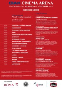 Al Teatro Ciak di Roma dal 30 agosto al 12 ottobre al via Ciak Cinema Arena, rassegna cinematografica ad ingresso gratuito che propone la