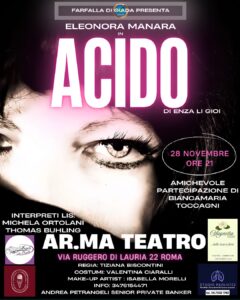 Farfalla di Giada presenta il dramma intenso e attuale “Acido”, scritto da Enza Li Gioi e interpretato da Eleonora Manara.