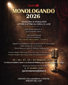 Al via le candidature per MONOLOGANDO 2026 – Rassegna di monologhi al Teatro IF di Roma Sono ufficialmente aperte le