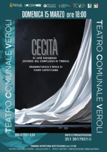 Il 15 marzo il Teatro Comunale Veroli ospiterà uno spettacolo teatrale ispirato all’opera Cecità di José Saramago, un lavoro che nasce come esercizio drammaturgico
