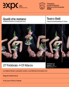 In occasione della Rassegna di drammaturgia italiana contemporanea EXPO- Teatro Italiano Contemporaneo, torna in scena da venerdì 27 febbraio a domenica 1 marzo, questa