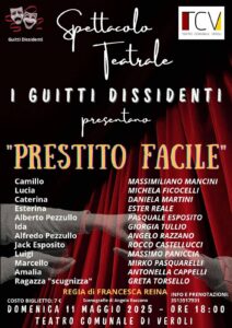 Teatro Comunale di Veroli Domenica 11 maggio 2024 – ore 18:00 “PRESTITO FACILE”! Compagnia “I Guitti dissidenti” Regia di Francesco