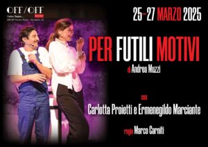 Off Off Theatre Dal 25 al 27 marzo 2025 PER FUTILI MOTIVI di Andrea Muzzi con Carlotta Proietti e Ermenegildo Marciante regia Marco Carniti costumi Susanna Proietti – aiuto regia Francesco Lonano Da martedì
