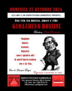 Nuovo Piccolo Garbatella Domenica 27 ottobre 2024 – ore 17:00 UNA VITA TRA MUSICA, AMORI E CIBO GIOACCHINO ROSSINI Relatore: