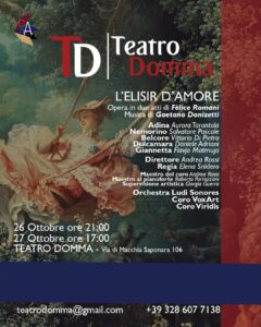 Teatro Domma – Acilia 26 ottobre alle ore 21 – 27 ottobre alle ore 17 L’ELISIR D’AMOREdi Felice Romanimusica Gaetano