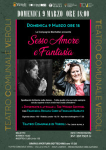 TEATRO COMUNALE VEROLI Domenica 9 marzo – ore 18:00 “SESSO AMORE E FANTASIA” Con: Tommaso Barbato e Francesca Romana Cerri In occasione