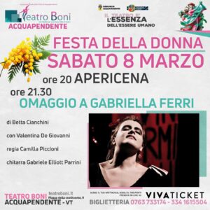 Teatro Boni di Acquapendente Sabato 8 marzo 2025 – ore 21,30 “SONO PARTITA DI SERA” Omaggio a Gabriella Ferri di