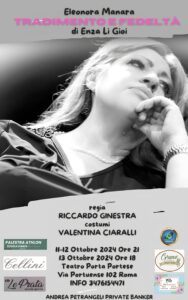 Teatro Portaportese Dall’11 al 13 ottobre 2024 TRADIMENTO E FEDELTÀ Monologo di Enza Li Gioi Interpretato da Eleonora Manara Regia