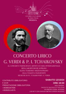 Sala Magna – Facoltà Valdese di Teologia Sabato 12 ottobre 2024 – ore 19:00 CONCERTO LIRICO G.VERDI & P.I TCHAIKOVSKY