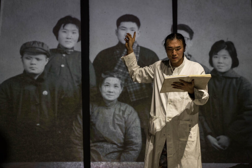 Ogni oggetto di scena viene man mano “pescato” dalle sabbie contenute in diversi sacchi che circondano l’attore, a simboleggiare la memoria, quello strumento magico indispensabile per dar voce a ciascun capitolo della propria storia familiare. Shi ripercorre anche il suo cammino formativo: dall’approdo alla Bocconi alla scelta radicale di lasciare l’università per tentare la via della recitazione all’Accademia Paolo Grassi di Milano, dove non ottenne il passaggio al secondo anno. Un episodio che oggi, visto il suo successo, assume un sapore paradossale. Lo spettacolo ricostruisce inoltre un secolo di storia cinese attraverso i racconti dei suoi antenati, interpretati dall’attore con rapidi cambi di voce e postura: dalla rivoluzione del 1911 alla guerra civile, dall’invasione giapponese alla nascita della Repubblica Popolare. Poi la dittatura, con le insensatezze figlie di un estremismo cieco, che porteranno una famiglia benestante di medici e imprenditori a voler ricominciare il proprio futuro lontano dall’oppressione. Sul fondale, tre pannelli verticali proiettano immagini e filmati d’epoca che accompagnano la narrazione. Il nodo centrale è la domanda identitaria: cinese o italiano? Una condizione ibrida che l’attore restituisce con lucidità, ironia, e lo smarrimento di essere stato spesso visto come uno straniero, da entrambe le parti: non a caso il sottotitolo dello spettacolo, che palesa anche il legame con la maschera multicolore di Arlecchino, è Traduttore – traditore di due padroni.