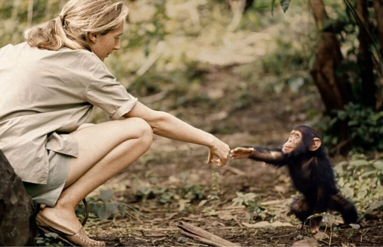 Primatologa ed etologa formatasi sul campo, quando giovanissima e senza studi universitari fu assunta dal paleoantropologo inglese Louis Leakey per osservare il comportamento degli scimpanzé in Tanzania nel Parco Nazionale del Gombe Stream. Jane Goodall chiarì al mondo che il confine tra umanità e animalità è molto più sfumato di quanto si pensi. Osservando presto l’uso praticato dagli scimpanzé di strumenti e utensili finalizzati a ottenere un risultato, capacità fino ad allora attribuita solo all’essere umano, cambiò il mondo dell’etologia, la scienza che studia il comportamento animale, tanto che Leakey sorpreso affermò “ora dobbiamo ridefinire l’uomo, ridefinire lo strumento, o accettare gli scimpanzé come umani”.