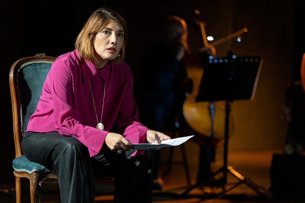 Lo spettacolo, costruito come un monologo documentario, intreccia parola, musica e materiale video. In scena, insieme alla Petrini, la presenza emotiva e sonora del violoncello di Pasquale Filastò, la voce limpida di Paola Bivona, la fisarmonica di Alessio Podestà: intermezzi musicali che non alleggeriscono, ma permettono al pubblico di respirare, di elaborare ciò che ha appena ascoltato. La direzione artistica di Norma Martelli tiene insieme racconto giornalistico e partitura emotiva con grande delicatezza.