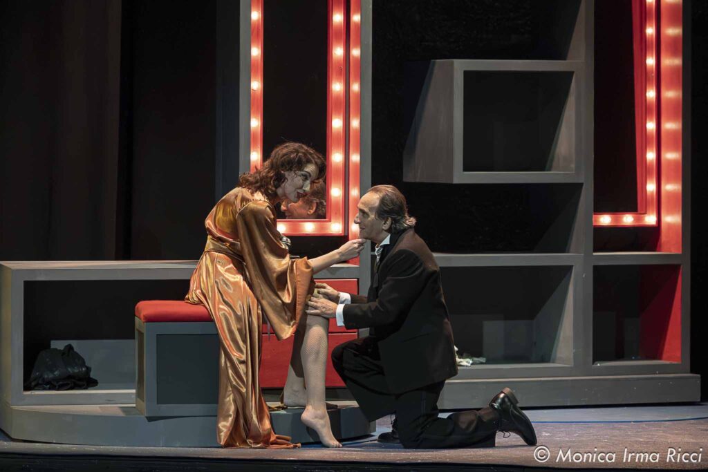 Lo spettacolo è reso ancora più incisivo da una scenografia efficace: un gioco sapiente di luci e proiezioni trasforma il palco in una New York claustrofobica e contraddittoria, madre e carnefice del suo figlio più scomodo. Una prova attoriale dignitosa per il cast, con i personaggi secondari che rimangono volutamente un passo indietro rispetto al protagonista, permettendo a quest’ultimo di emergere in tutto il suo carisma. Un plauso va ad Antonello Avallone, capace di incarnare Lenny con autenticità brutale: il corpo che si contorce, la voce che si spezza, lo sguardo sempre in bilico tra provocazione e lacerazione. Intensa anche l’interpretazione di Giulia di Quilio, forte di un’esperienza maturata sia nel teatro che nell’arte del burlesque, background evidente nella scioltezza di esecuzione delle coreografie che intervallano gli sketch del comico. Ugualmente efficace il commento musicale della cantante Flaminia Fegarotti, che si dimostra versatile a scandire il cambio di epoca in parallelo ai fatti narrati, passando dal più classico standard del jazz, Autumn leaves, all’inno sixties This boots are made for walking di Nancy Sinatra, fino ad arrivare a Bob Dylan con la sua epocale Blowing in the wind.