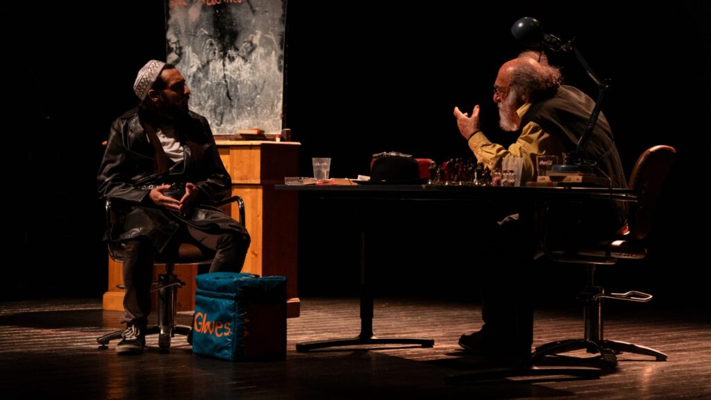 Questa doppia natura de Lo Psicologo viene fuori maggiormente dall’immobilità del protagonista, nonché dalla sua centralità, attorno a cui ruota tutta la narrazione ed i relativi personaggi. Un’immobilità giustificata, in un certo senso, ancora di più da un attore di un certo calibro come Alessandro Haber, la cui presenza scenica riempie ogni spazio vuoto e silenzioso del palco. Non solo, si tratta di un artista dal patrimonio artistico incredibile e fuori di discussione. Senonché, avvalersi di un nome la cui fama lo conferma è già un biglietto d’oro. Eppure, è un’operazione che non basta ai fini di uno spettacolo. La grandezza non è tutto, soprattutto nei confronti di un’arte così artigianale come il teatro che, anzi, ha il costante bisogno di maniche rimboccate e mani che si sporcano.