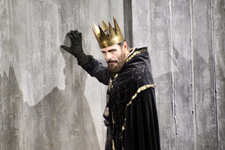 Un tessuto sonoro che amplifica l’incombere di un fato inesorabile e l’insorgere del male che è nell’uomo, delle sue vulnerabilità e conflittualità, della tensione al potere e che dà voce agli incubi che lo tormenteranno in eterno. Il Macbeth diretto da Daniele Pecci si conclude con un’ambiguità latente, un occulto presagio di ciclicità, sancito dalla forza visiva delle tre anziane streghe incappucciate.