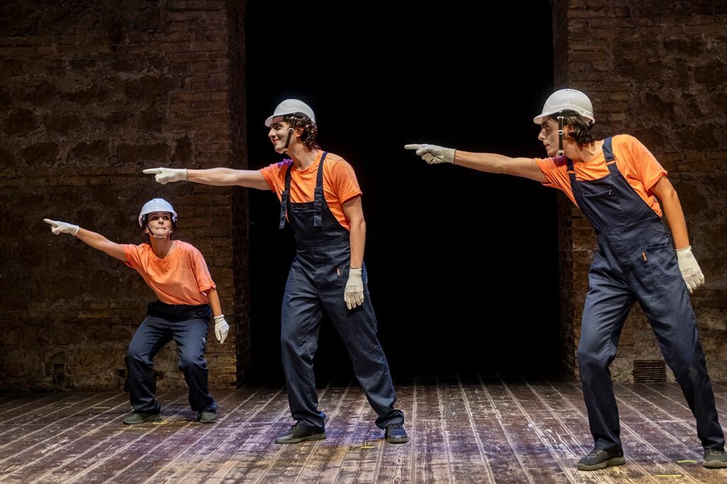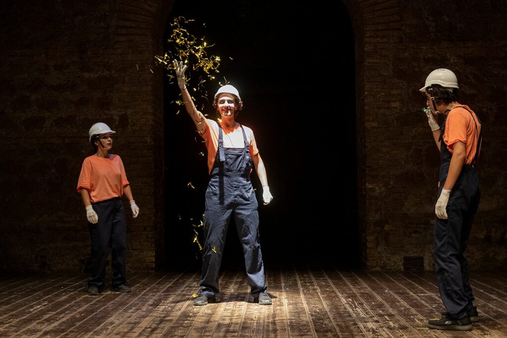 All’interno di uno spazio scenico essenziale, claustrofobico e avvolto in luci fredde e intermittenti, Maìo prende vita come un rito alienante e ipnotico. La regia di Ivo Randaccio trascina nel cuore pulsante – e malato – di una fabbrica non meglio definita, dove il tempo è ciclico, le azioni reiterate fino allo svuotamento e l’identità personale si dissolve nell’obbedienza cieca. È un luogo sospeso, privo di riferimenti temporali o geografici, dove ciò che conta non è la storia ma il ritmo inesorabile del lavoro.