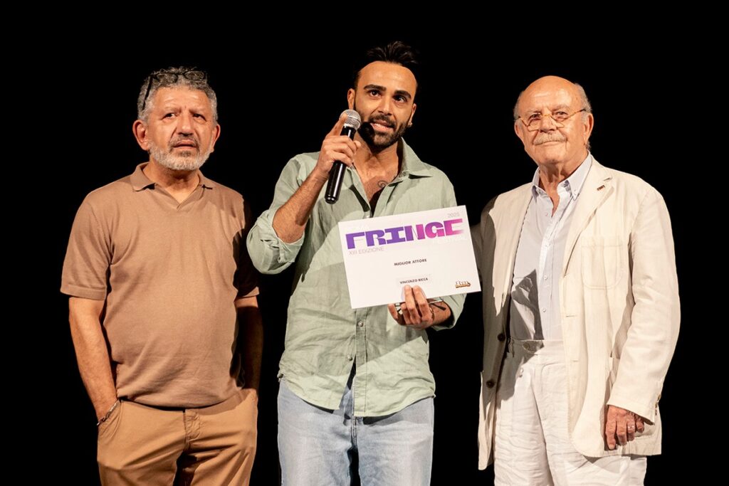 Il momento più atteso della serata è stato l’annuncio del vincitore assoluto: Rainbow, che ha conquistato anche il Premio Roma Fringe Festival 2025, imponendosi come la vera rivelazione di questa edizione. Il monologo scritto e interpretato da Francesco Rivieccio ha toccato nel profondo pubblico e giuria, grazie alla straordinaria capacità di trasformare una vicenda personale in un racconto dal respiro universale. Attraverso la storia di un’adolescenza spezzata dalla guerra, Rainbow si fa ponte tra generazioni, luogo di memoria e spazio di riflessione condivisa. È un atto d’amore verso chi ha avuto paura, ma ha continuato a resistere. Con lucidità e struggente delicatezza, Rivieccio dà voce a chi è stato dimenticato dalla Storia, restituendo dignità e umanità a una memoria tanto fragile quanto necessari