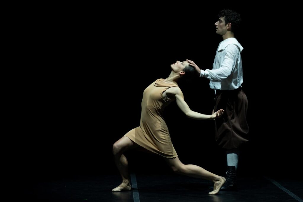 A questo si affianca, come ulteriore elemento unificante, un uso consapevole e ricorrente del chiaroscuro, capace di amplificare visivamente le tensioni che attraversano l’intero percorso. La risultante, pertanto, è un’opera coreografica che – pur muovendosi entro coordinate di astrattismo coreutico – non rinuncia a un profondo e sotteso lirismo narrativo: una tensione costante tra forma e significato, in cui l’essenzialità del gesto si fa veicolo di una narrazione densa, stratificata e intimamente umana.