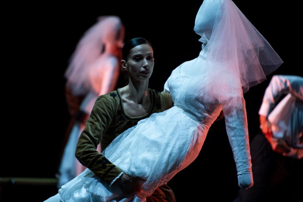 Qui, fragilità e forza; innocenza e austerità si intrecciano in un linguaggio coreutico essenziale, ma dirompente. Dinamico e di profonda fisicità. Un contrasto celestiale che si riflette anche sul piano musicale: da un lato le sonorità elettroniche di Stéphane Roy; dall’altro la solennità e l’intimismo barocco del Magnificatdi Vivaldi. Una dicotomia sonora che non accompagna semplicemente l’azione, ma la amplifica. A rafforzare ulteriormente questa tensione interviene anche un impianto illuminotecnico giocato sul chiaroscuro, capace di restituire visivamente il conflitto interiore.